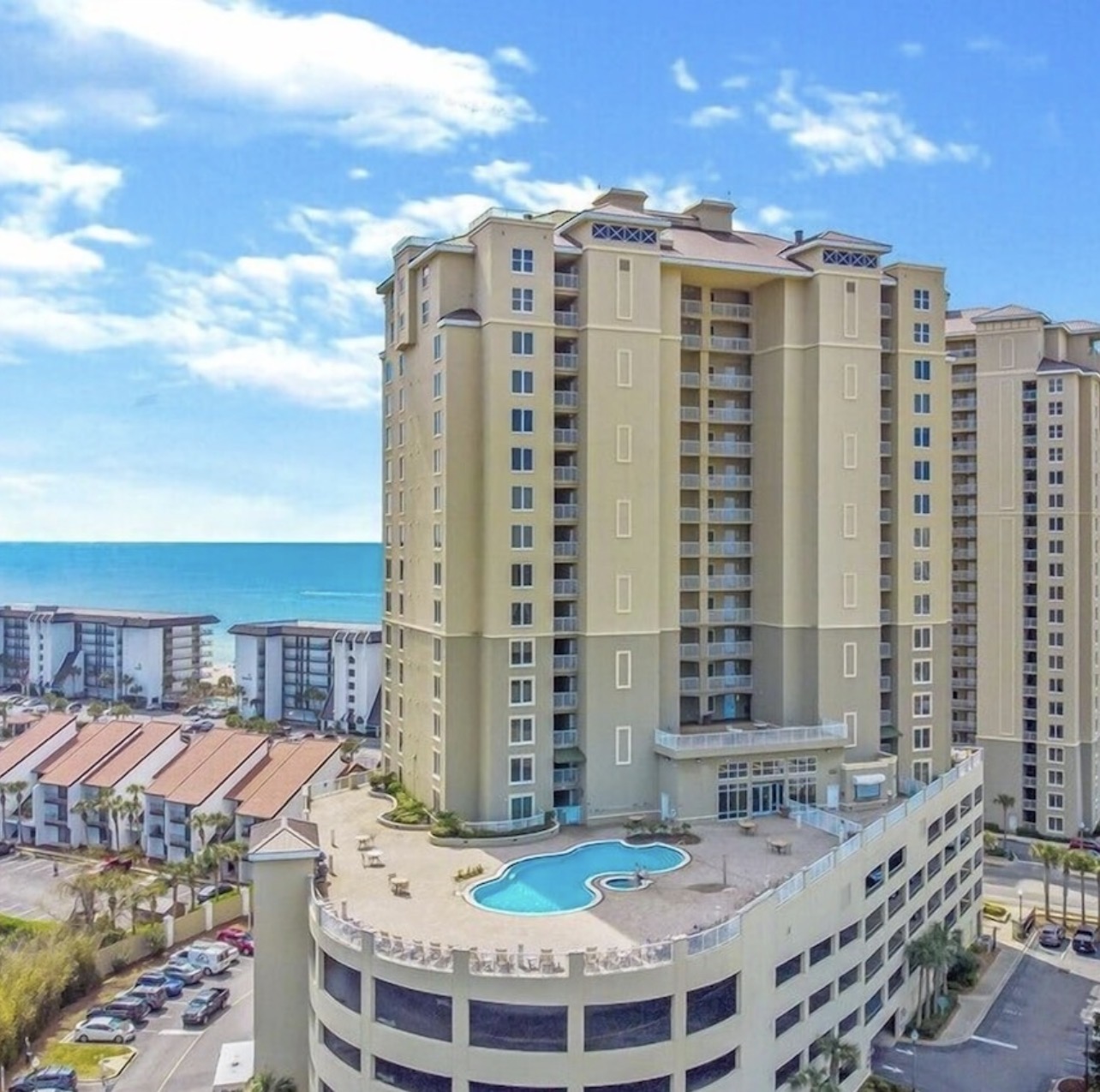 Spectacular Views * Restaurant on-site, other eateries within walking distance * Gulf front pool, kiddie pool, hot tub and rooftop heated pool and hot tub * Poolside tiki bar, grills and fitness center * Under 1 mile to Shipwreck Island; 4 miles to Pier Park * Professionally Managed;