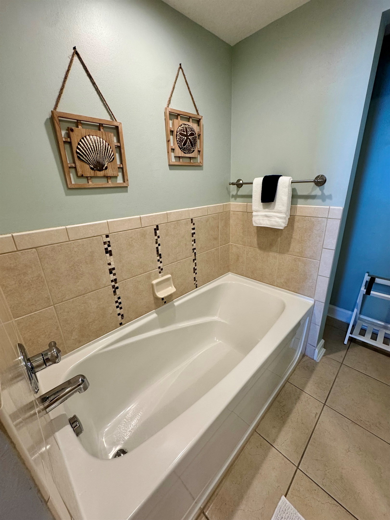 The laundry center is located just off the hall access across from the Guest Bath. Your Guest Bath features a tub shower combination for ultimate convenience.